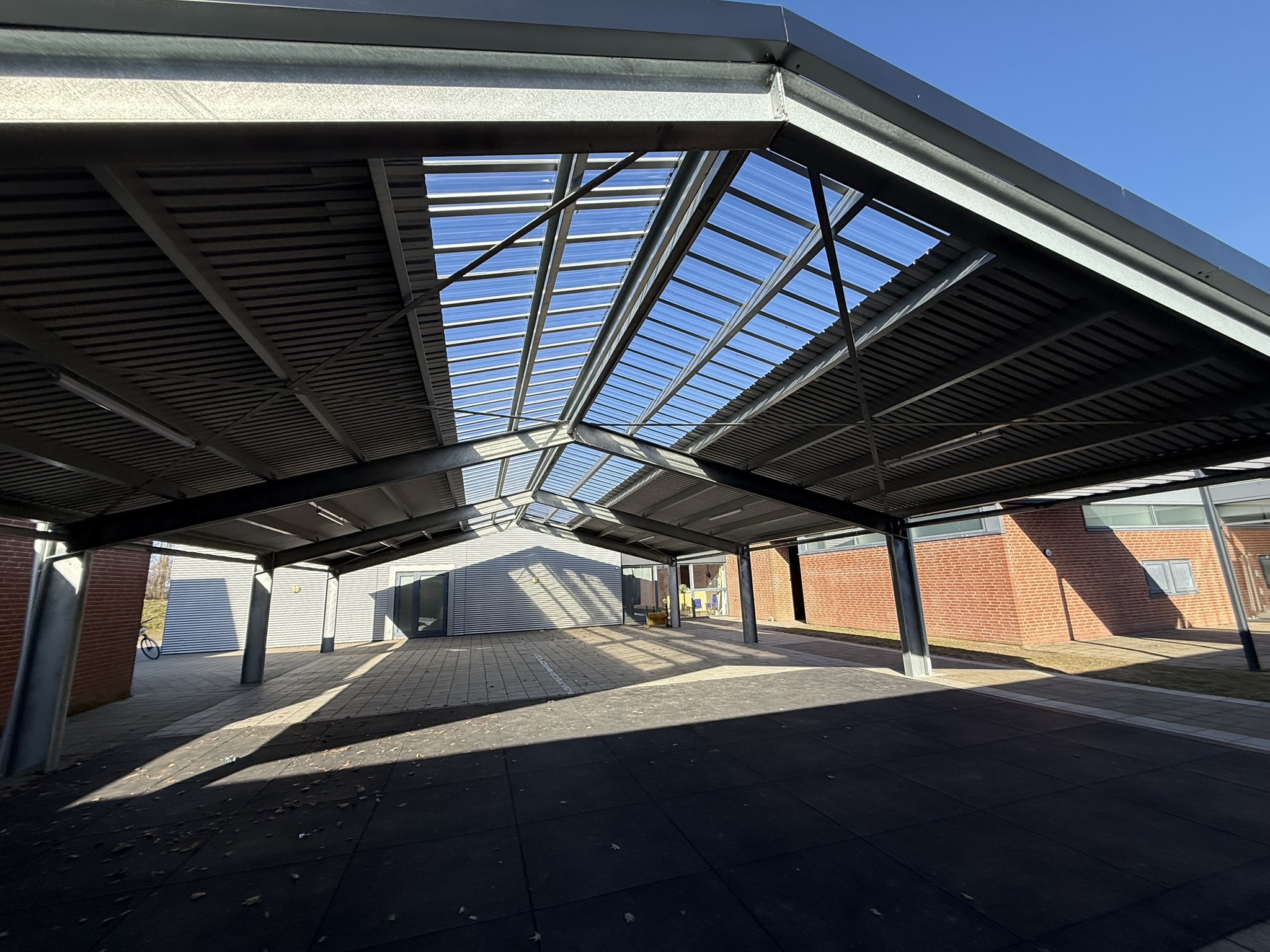Overdækning, som blev taget i brug i 2025, gør det muligt for medlemmer af NBSIF Fitness at gennemføre crossfit og andre former for træning udendørs uanset vejret. Den overdækkede gård er beliggende umiddelbart ud for fitnesslokalerne på Lyshøj Allé 1 i Strandhuse. Foto: NBSIF Kommunikation.